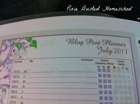 For my first review with Mosaic Reviews, I was supposed to choose a free blog planner to review. After looking at the extensive list, I chose the “My Blog Planner 2013” from Erica at Confessions of a Homeschooler. There were so many choices that it was really hard to choose.